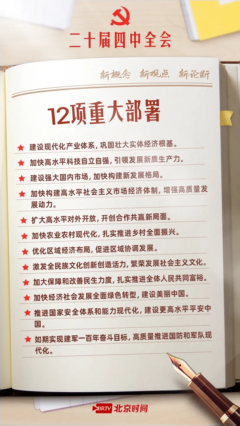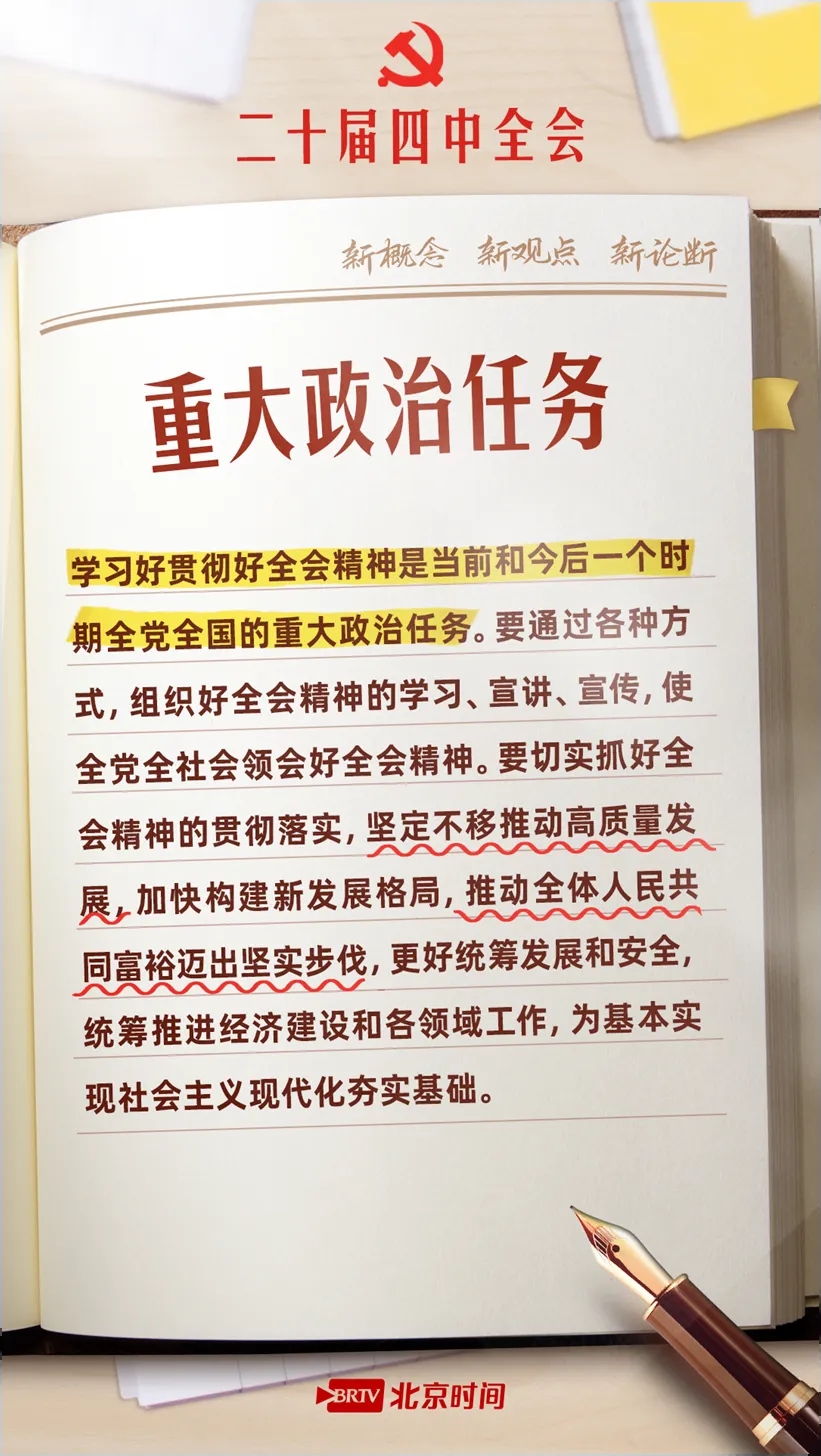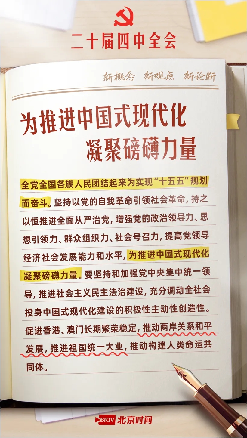 10月23日,党的二十届四中全会公报重磅发布,为“十五五”时期发展锚定航向,更向2035年基本实现社会主义现代化目标吹响号角。公报中提出了哪些新概念、新观点、新论断?“十五五”时期我国经济社会发展有哪些主要目标?收藏这份学习笔记,锚定目标,努力奋斗!