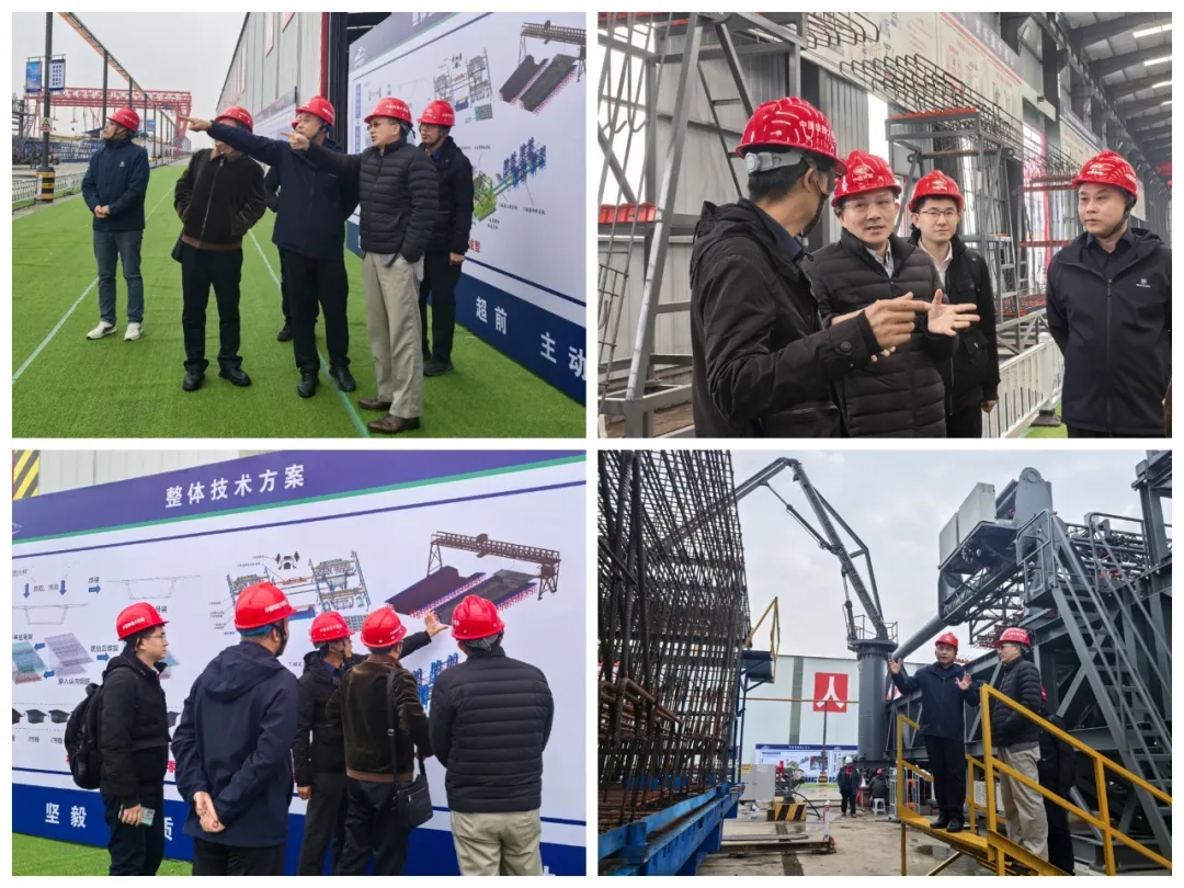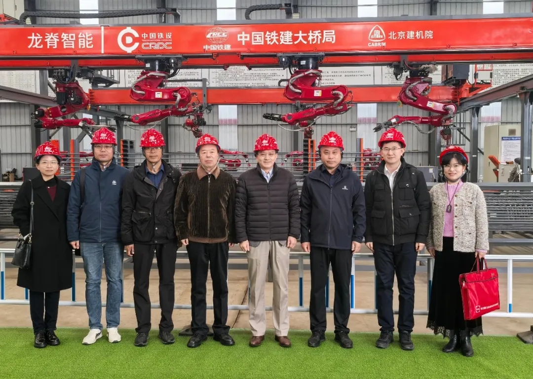 11月8日,中国建研院党委副书记、总经理樊金龙赴天津智能制造铁路梁场调研指导32米铁路简支箱梁钢筋骨架智能成型装备安全生产和业务工作。